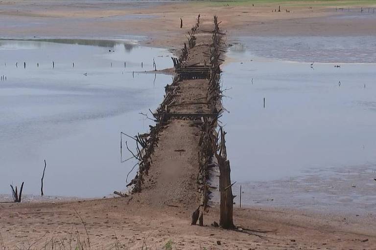 Em Guaraci, que fica na divisa com Frutal (MG), o recuo da água do rio Grande, que em alguns pontos superou os 200 metros -e ficou mais de 10 m mais raso- fez com que uma antiga ponte utilizada por peões boiadeiros para o transporte de milhares de cabeças de gado ressurgisse.
