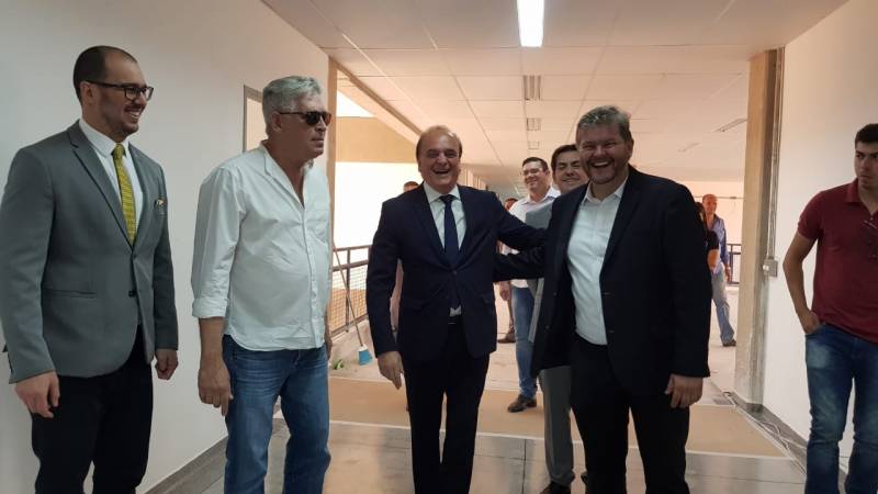 Juninho e outras autoridades do município acompanham a visita do secretário estadual.
