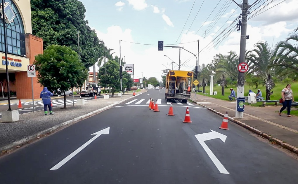 Além do semáforo, a prefeitura reforçou e ampliou a pintura de solo nas imediações, providenciando sinalização de faixa de pedestres, indicação de mão de direção, “Pare” e também delimitou espaço para taxis.