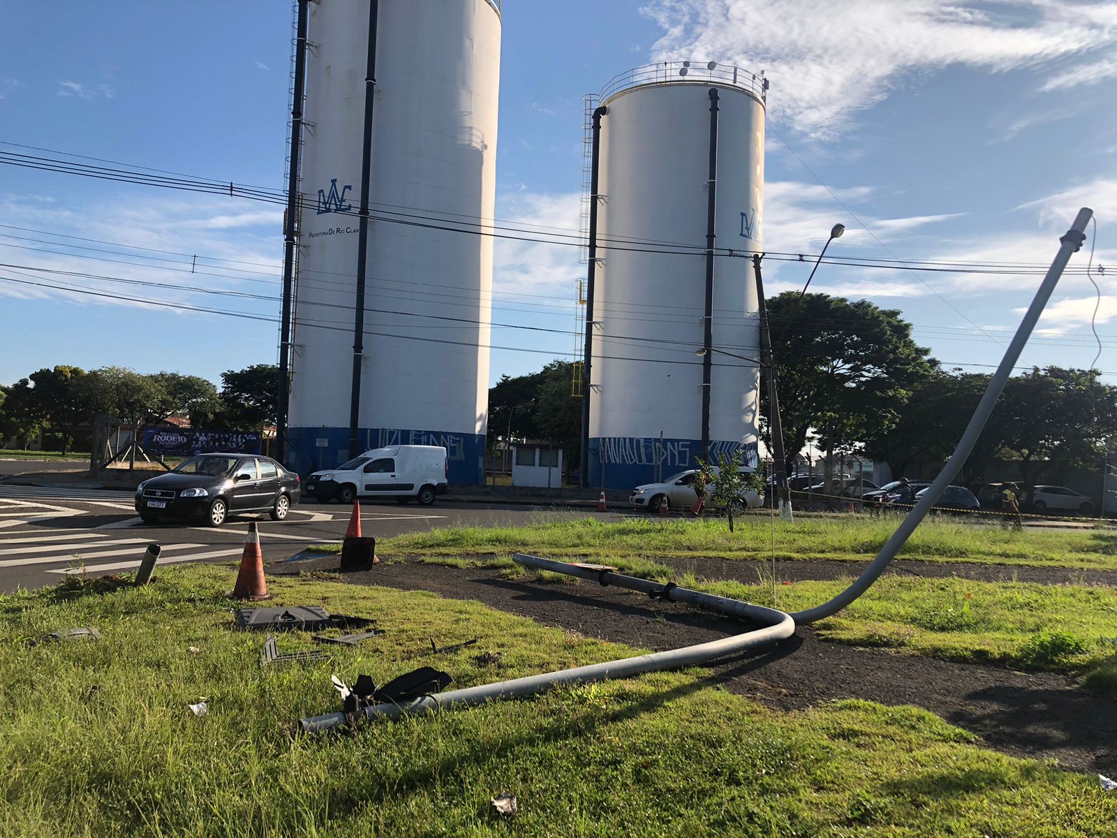 A coluna com os semáforos foi derrubada na manhã de quarta-feira (29) após colisão de caminhão. Ainda pela manhã equipe da Mobilidade Urbana foi ao local para fazer os reparos. “Como a coluna foi arrancada, temos que esperar secar o cimento do novo suporte colocado em substituição, por isso os equipamentos só poderão ser ligados nessa quinta-feira, se não houver imprevistos como chuvas muito fortes”, explica Vitor Caparrotti, da Mobilidade Urbana, acrescentando que sinalização provisória de “Pare” foi providenciada no local para o período sem os semáforos.
