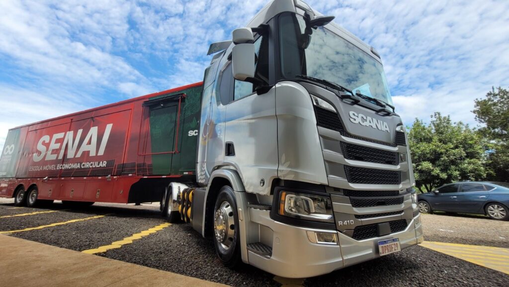 A Escola Móvel de Economia Circular do Senai-SP é uma parceria com a empresa Scania, que disponibilizou para o projeto, em formato de comodato, um caminhão movido a biometano combustível, garantindo menos emissão de carbono nas viagens pelo estado de São Paulo.