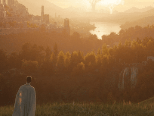 A Amazon divulgou nesta segunda-feira (2) a primeira imagem da série de “O Senhor dos Anéis” que está sendo produzida para a Amazon Prime Video. Nela, é possível ver uma figura com capa branca observando de longe um dos cenários da trama.