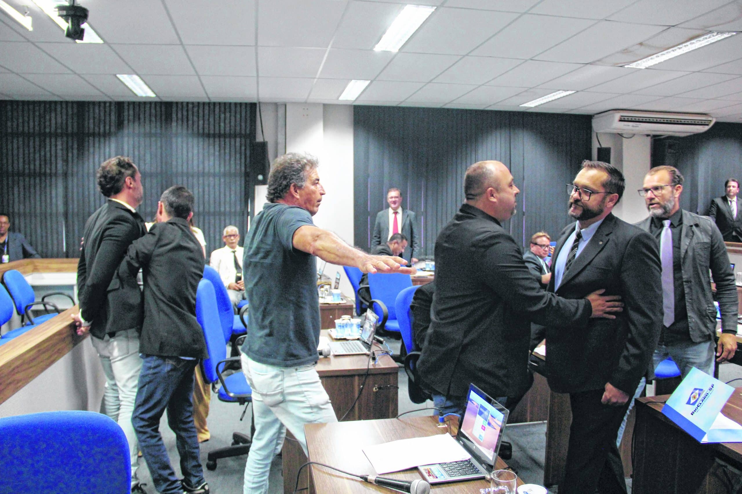 Foi o bastante para um bate-boca. Os microfones de ambos foram cortados, mas não cessou a discussão. Após os ânimos se acalmarem, novamente a briga recomeçou com Rodrigo criticando Rafael, que também ampliou as cobranças contra Valmir. Neste momento a briga quase chegou “aos finalmentes”, quando o setor de segurança da Câmara precisou intervir ao lado de vereadores que seguraram Rodrigo e Rafael. Poucos instantes depois, ambos já calmos, deram as mãos. A sessão foi retomada.
