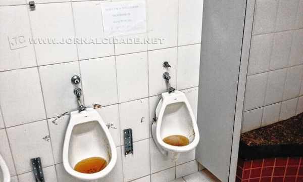 No último dia 10, as condições do sanitário masculino do Terminal Rodoviário eram uma prova de resistência para quem precisasse fazer uso. De três mictórios, dois estavam quebrados e com urina quase transbordando. Na parede, o seguinte recado: ‘Desculpe o transtorno: mictórios em manutenção’. Insatisfeito, um usuário completou a frase com uma observação: ‘..há quase um ano’.