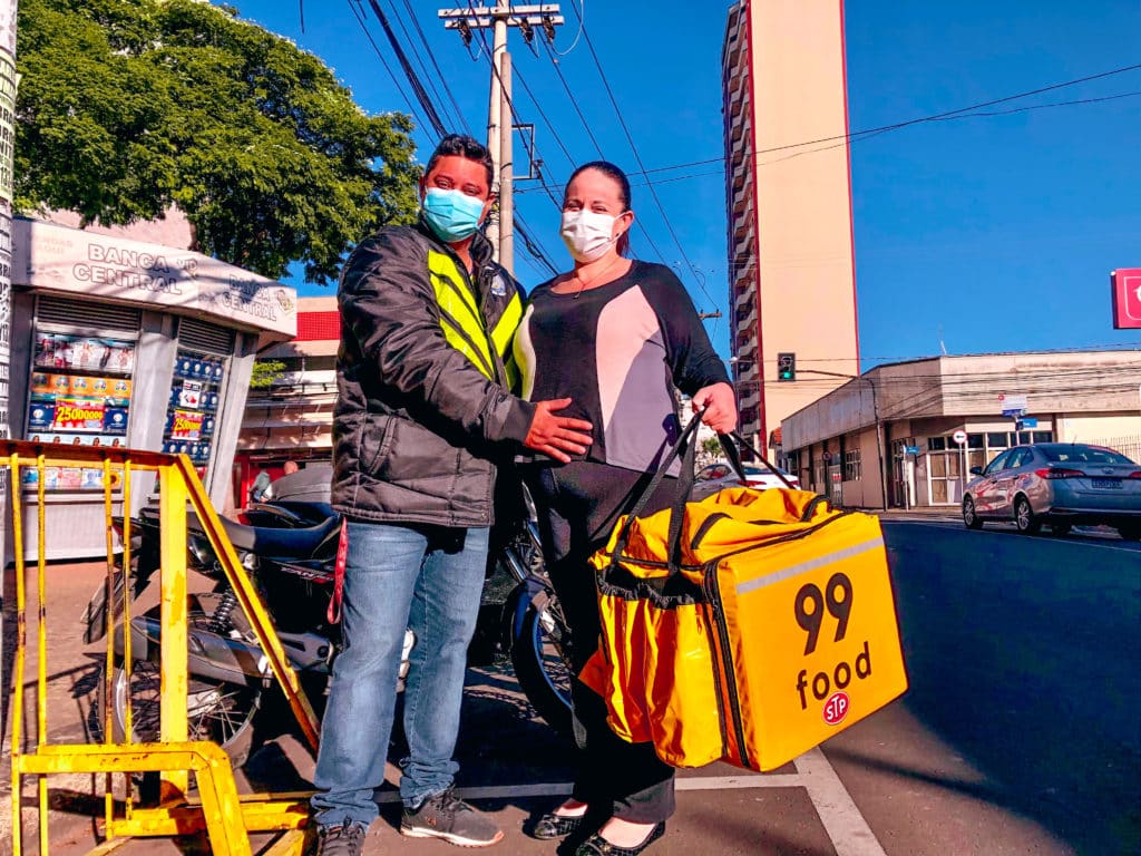 Ademir Silverio, de 40 anos, é motoboy há 19. Quando quase ninguém estava nas ruas, ele continuou trabalhando para levar comida para casa e sustentar a esposa Jaqueline Macedo Silverio, de 34 anos, grávida de sete meses, e os filhos: Ana Beatriz Silverio, de 20 anos e Nicolas Silvério, de 12.