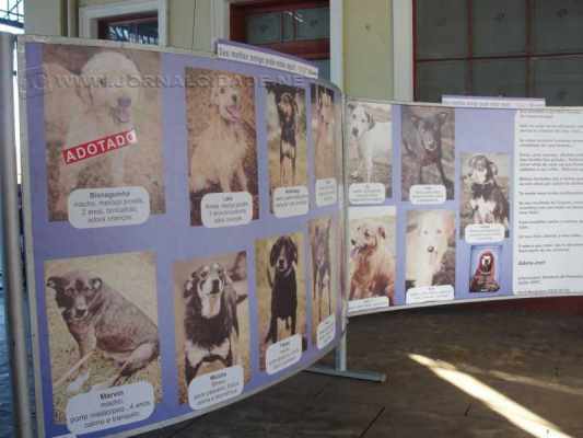 Na entrada da antiga Estação Ferroviária, na Rua 1 com a Avenida 1, há um painel que mostra diversos dos animais disponíveis para a adoção.