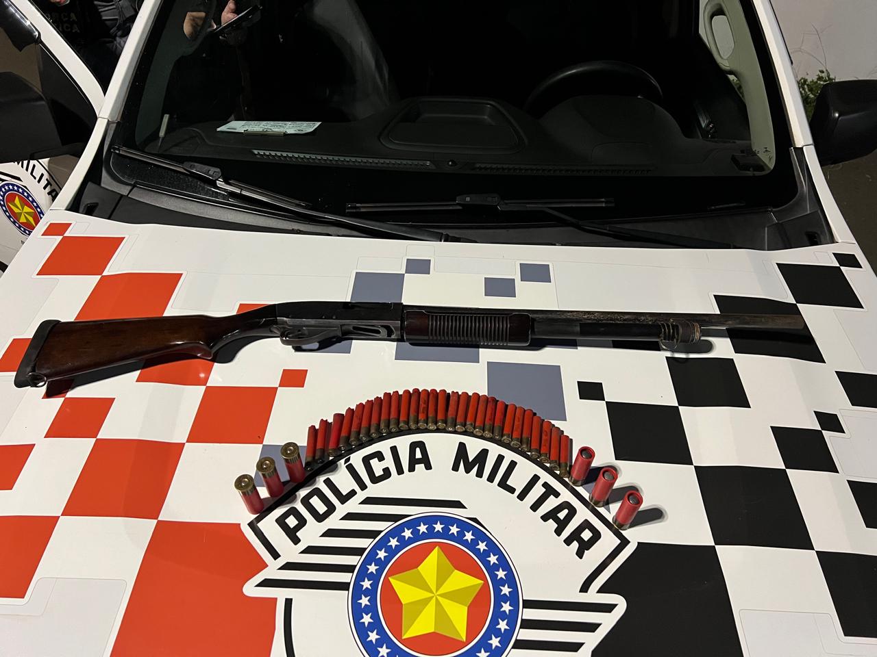 A Polícia Militar apreendeu uma espingarda calibre 12 e prendeu um homem por posse ilegal na noite de segunda-feira (24), no bairro Campo do Coxo, zona rural, após denúncia de disparos de arma de fogo. No local, os policiais encontraram o suspeito, que inicialmente negou ter efetuado tiros, mas admitiu manter armamento e munições guardados.