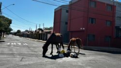 Animais de grande porte dividem via com carros e comem lixo em via de Rio Claro