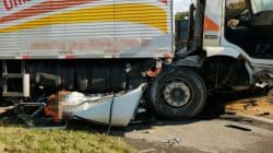 Carro foi esmagado por caminhão em acidente entre Rio Claro e Corumbataí