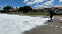 Espaço multiúso tem piso na cor branca para os desfiles das escolas de samba