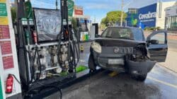 Após batida, carro colide contra bomba de combustível em posto na Visconde