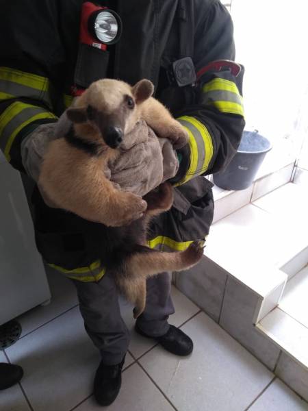 Tamanduá é resgatado pelo Corpo de bombeiros