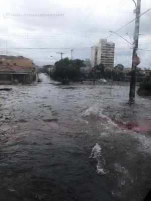 No trecho defronte ao Espaço Livre, a água subiu em grande quantidade e poucos se arriscaram a transitar por ali. Motociclistas se abrigaram no canteiro central para não serem arrastados pela água.