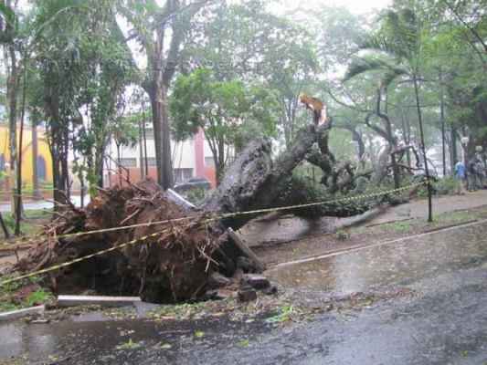 A Defesa Civil do município atendeu a uma ocorrência de queda de árvore na Avenida da Saudade, no trecho entre as ruas 11 e 12, no bairro Consolação, na praça localizada na frente da Igreja Bom Jesus.