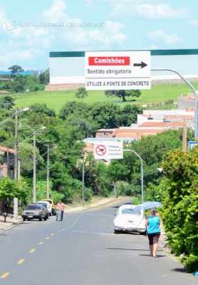 A Secretaria de Mobilidade Urbana e Sistema de Viário de Rio Claro instalou nessa quinta-feira (7) placa informativa sobre a proibição do tráfego de caminhões e ônibus na ponte de madeira que fica na Avenida 14, no Terra Nova.