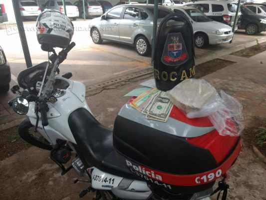 Durante patrulhamento, os policiais das equipes de ROCAM, avistaram uma pessoa em atitude suspeita e após submetê-la à busca pessoal, obtiveram sucesso em localizar 01 (uma) pedra bruta de crack, totalizando 410 gramas, $ 4,00 dólares e R$ 65,00.