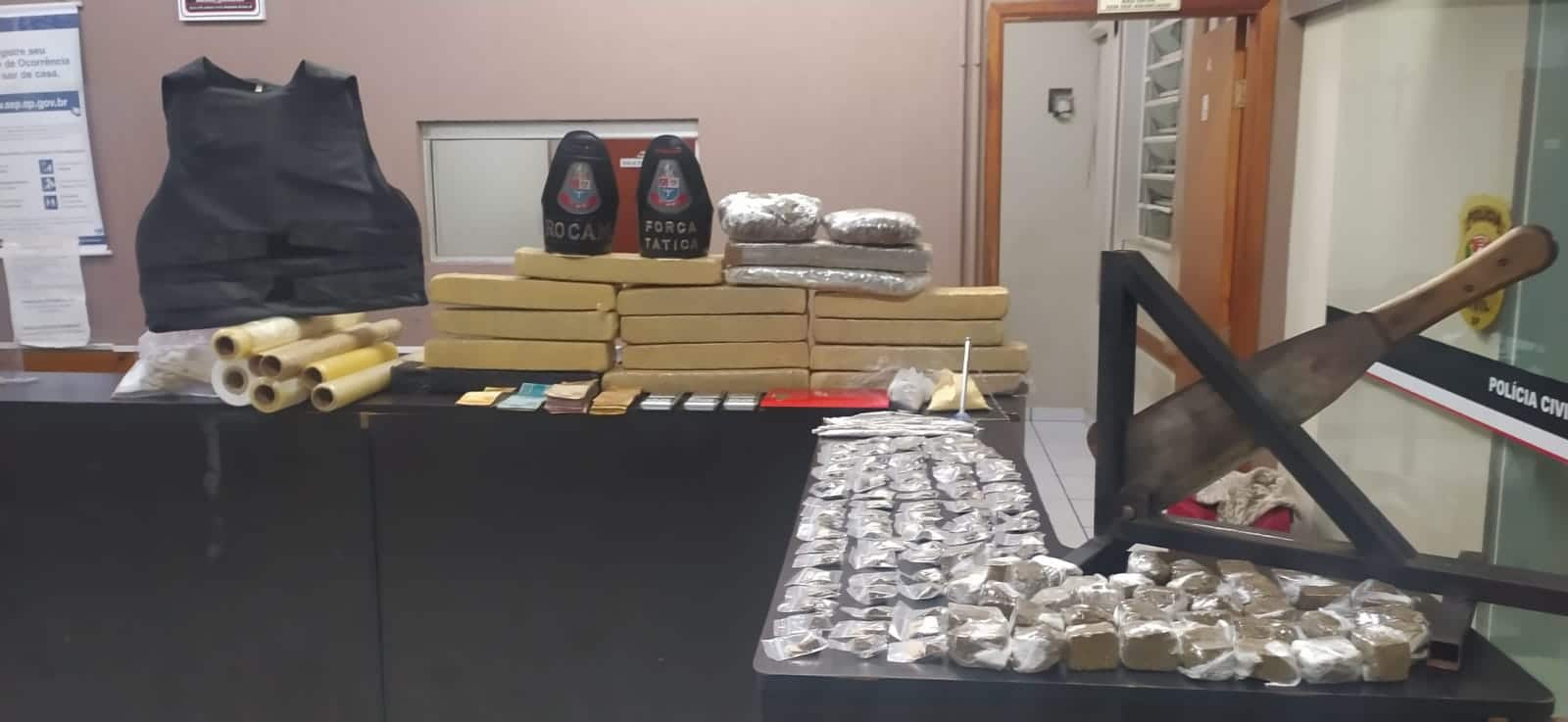 Uma denúncia levou policiais da Força Tática de Rio Claro até uma residência na Avenida 1, bairro Vila Industrial. A equipe teve a informação de que pelo local uma mulher armazenava drogas. Ao chegarem no endereço avistaram pelo portão um tijolo de maconha na sala além de materiais para o embalo da droga e fizeram contato com a proprietária que autorizou a entrada na casa.