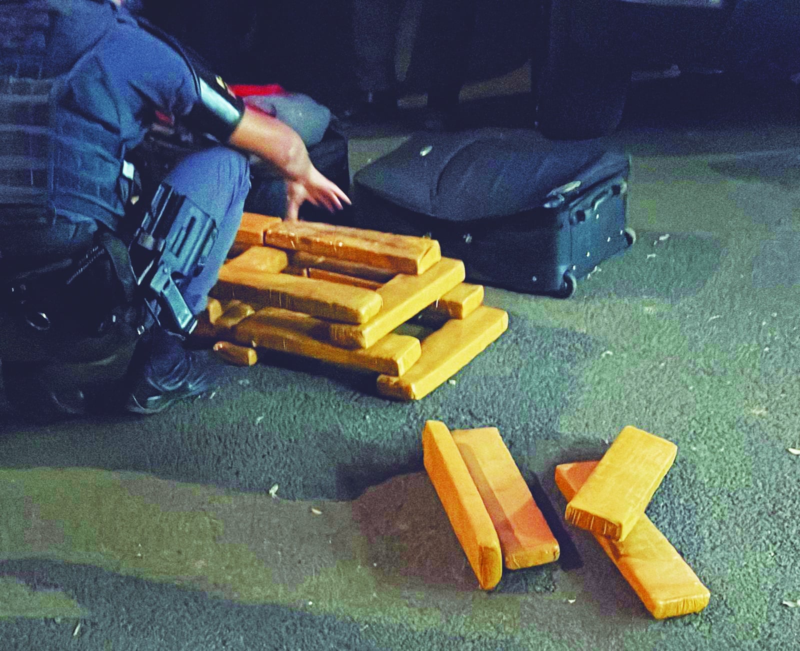 Pela praça do pedágio, na Rodovia Washington Luís (SP-310), ao entrarem em um ônibus que fazia o itinerário de Pereira Barretos para Rio Claro, os PMs encontraram duas malas no bagageiro contendo 21 tijolos de maconha que pesaram quase 30 quilos.