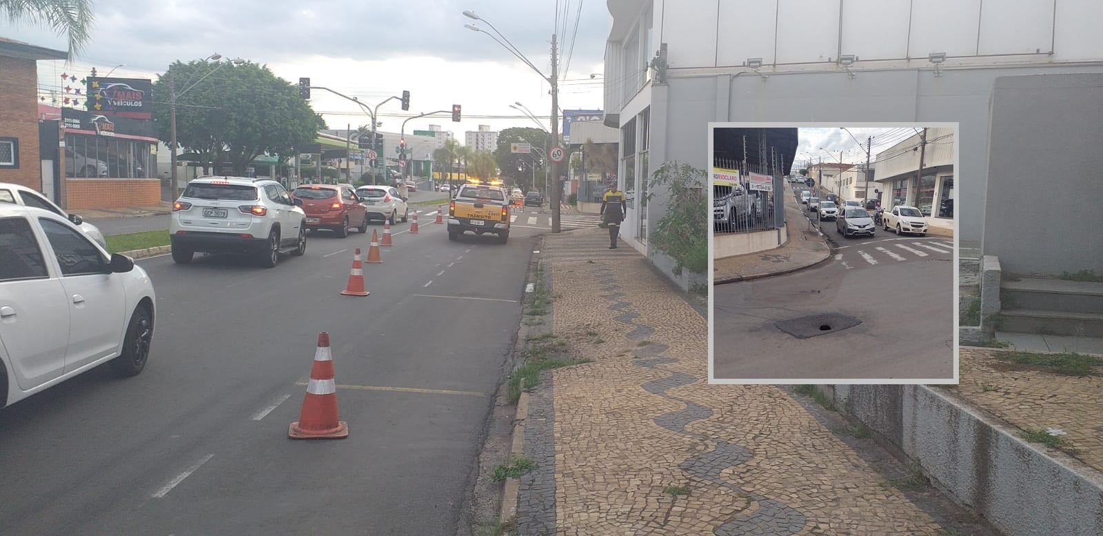 Meia via da Avenida Visconde do Rio Claro com a Rua 12 foi interditada na tarde desta quinta-feira (17) pelo Departamento de Trânsito do município após o surgimento de um buraco na faixa da direita sentido centro – bairro.