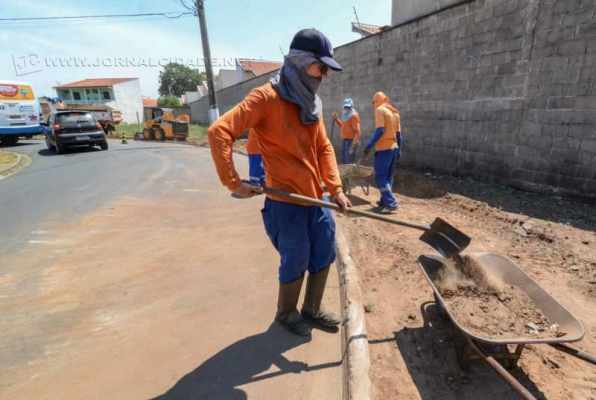 Ao término da terraplenagem serão utilizadas raspas de asfalto em um trecho de aproximadamente 200 metros de calçada. Os trabalhos estão sendo realizados pela Secretaria Municipal de Obras e pela Secretaria Municipal de Agricultura, Abastecimento, Silvicultura e Manutenção.