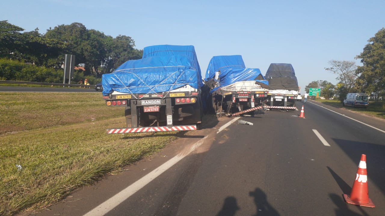 Um acidente envolvendo três caminhões aconteceu na tarde desta sexta-feira (22), na Rodovia Washigton Luís, no quilômetro 165 + 400 metros, na cidade de Santa Gertrudes, sentido capital.