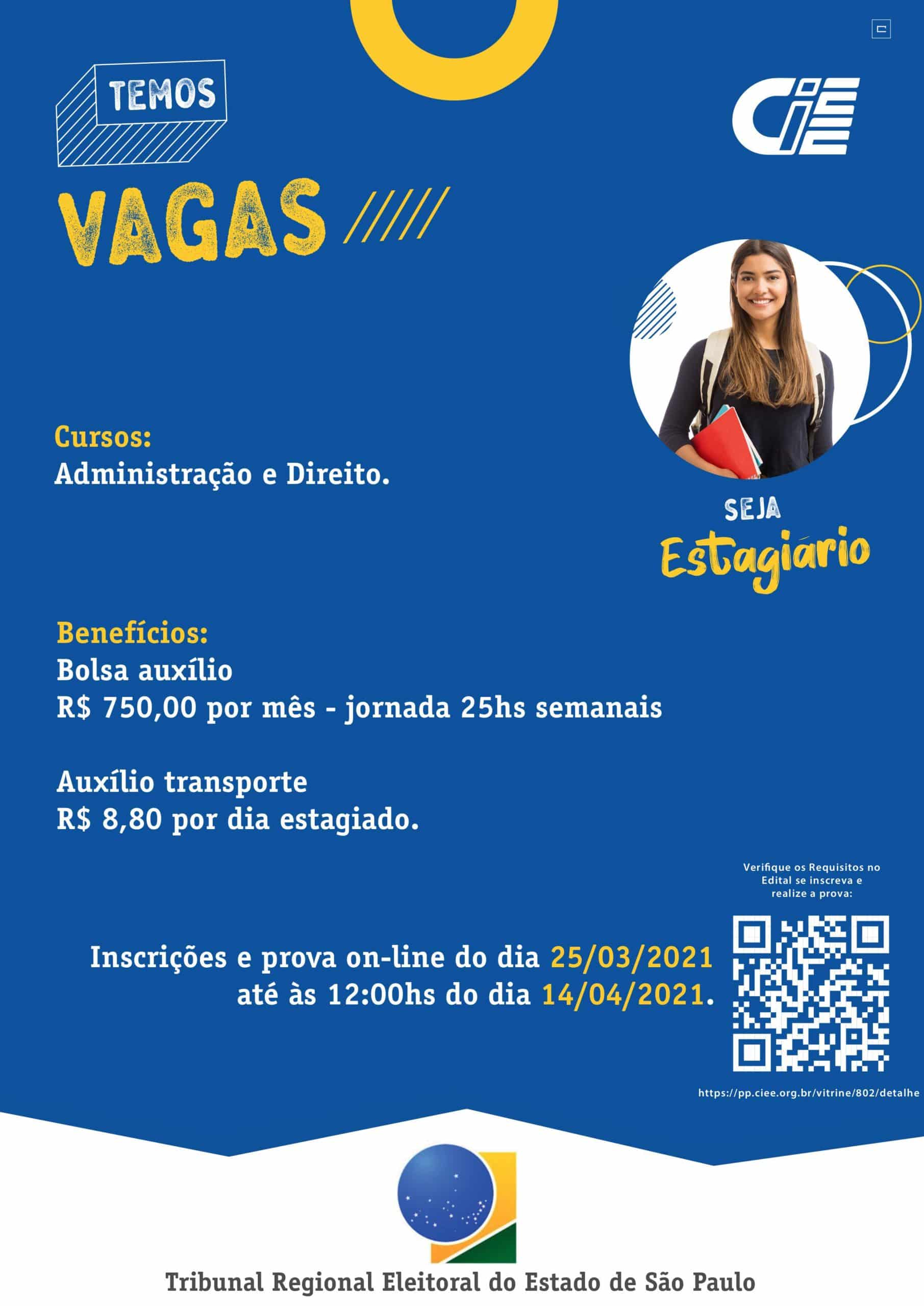 Está aberto o processo seletivo para estagiários de ensino superior do Tribunal Regional Eleitoral de São Paulo.