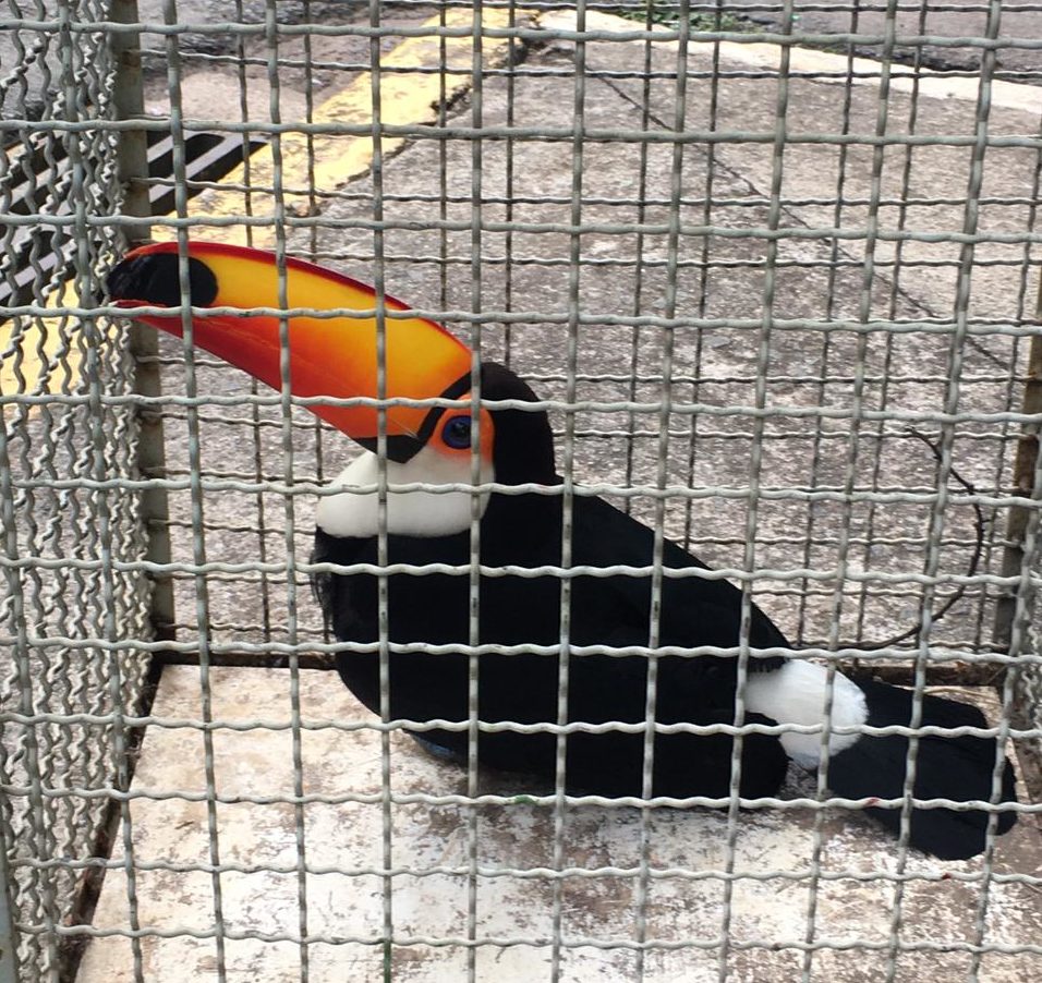 Guardas Civis da Patrulha Ambiental e Animal deslocaram-se até um condomínio de Rio Claro para averiguar a ocorrência de que um tucano estaria com uma das asas machucadas na área de uso comum do espaço. Pelo local, conseguiram capturar a ave e a colocaram em uma gaiola improvisada.