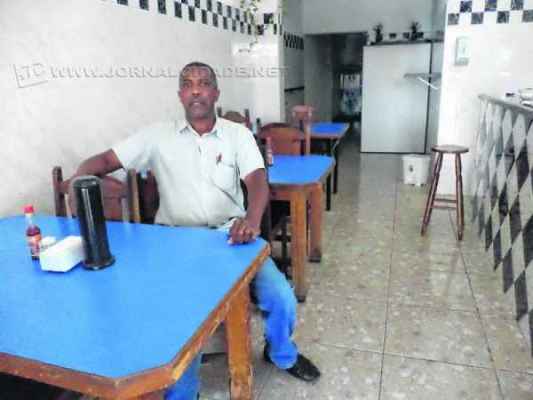 O presidente Marcos Faria na lanchonete que integra a sede da União das Escolas de Samba da Cidade Azul (Uesca)