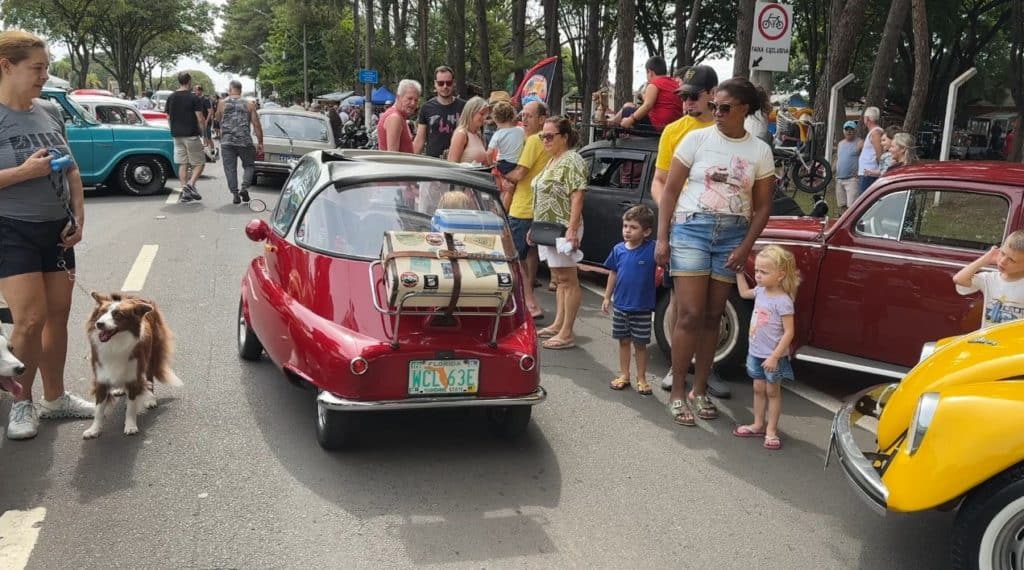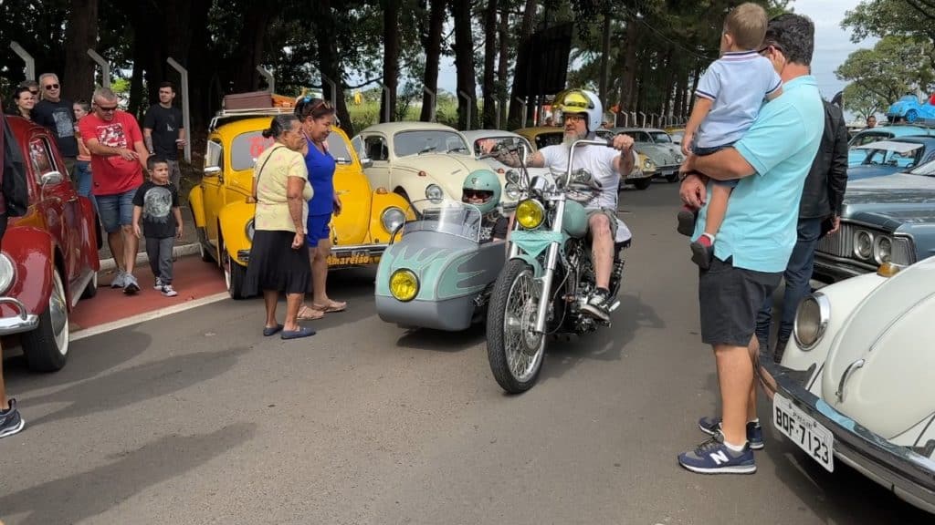 As raridades presentes eram verdadeiros tesouros sobre rodas. Desde uma elegante Pick-up Studebaker dos anos 50, com sua imponente carroceria, até os ágeis Volkswagen Fuscas dos anos 60, cada veículo contava sua própria história, como páginas de um livro de história automobilística. Entre eles, destacavam-se exemplares únicos e pouco vistos, como o raro Ford Mustang GT ou o clássico Landau, cada um despertando suspiros de admiração entre os presentes. Cada carro ou motocicleta presente era mais do que uma mera máquina; era um portal para uma era de elegância e charme atemporais.