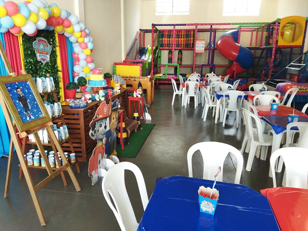Na locação do salão está incluso: brinquedão com 3 andares (escorregador, cama elástica, piscina de bolinha), tombo legal, basquete eletrônico, mesa de pebolim, som, wi-fi e 15 jogos de mesas.