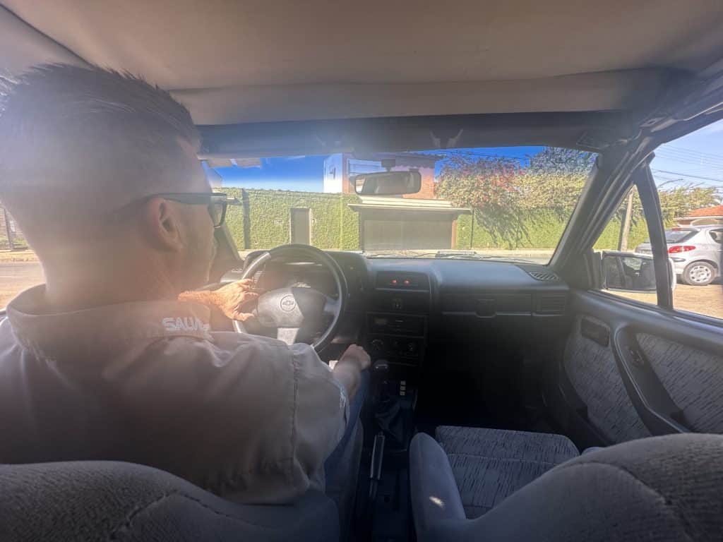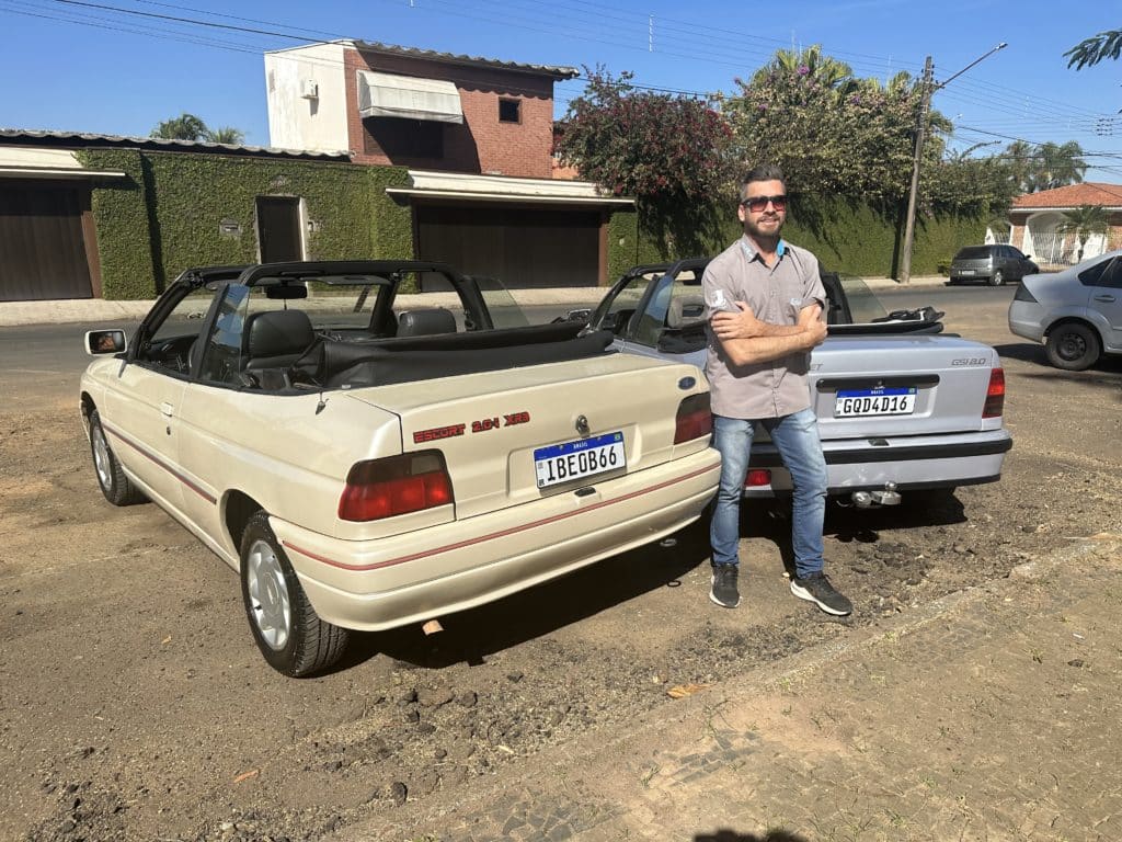 O Escort ele foi buscar na região de Minas Gerais, diz que o antigo proprietário, Tiago, ficou com o carro por 12 anos e o grau de originalidade do carro é bem grande. “Me atraiu muito essa questão porque os faróis são originais, o rádio equalizador é original, as travas da capota, então são detalhes que enriquecem o carro”.