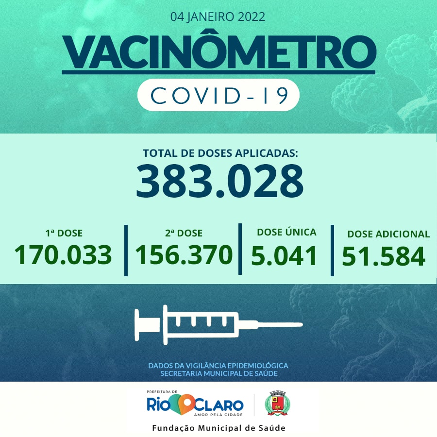 Rio Claro aplicou nesta terça-feira (4) 1.669 doses de vacinas contra a Covid, sendo 37 primeiras doses, 121 segundas doses e 1.511 doses adicionais (reforço). As pessoas foram vacinadas nas quatro unidades básicas de saúde.