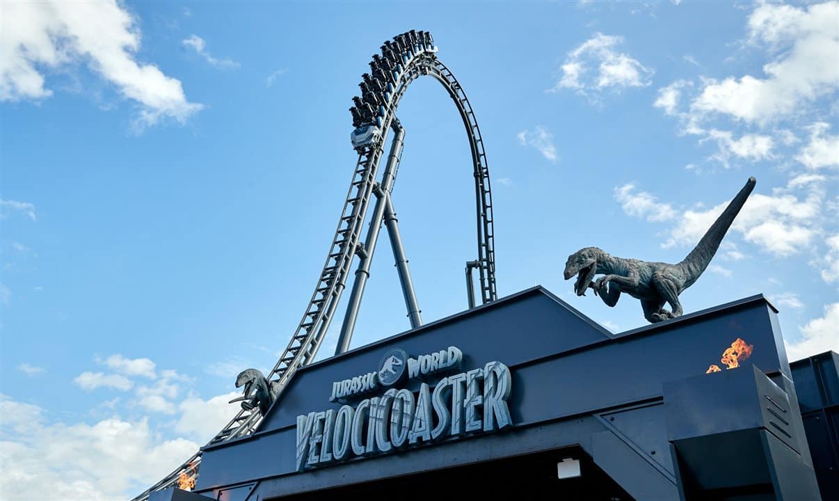 A Jurassic World VelociCoaster é baseada na franquia do parque dos dinossauros e terá 1.430 metros de extensão. O carrinho vai atingir 112 km/h em apenas 2,4 segundos em um dos arranques do brinquedo, que conta ainda com uma queda de 47 metros de altura, a 80 graus –será a mais íngreme da Universal até agora.