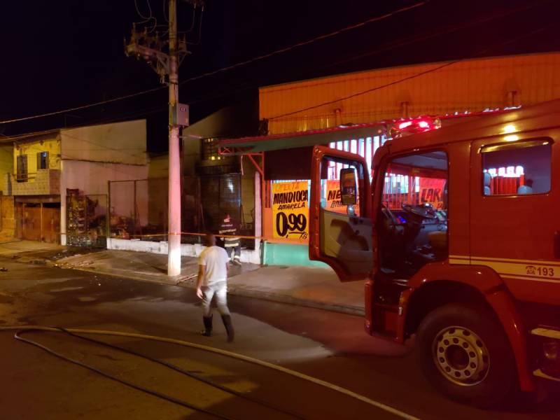 Um incêndio na noite desta terça-feira (11) atingiu uma câmara de gás de um estabelecimento comercial na rua 6, região do Grande Cervezão.