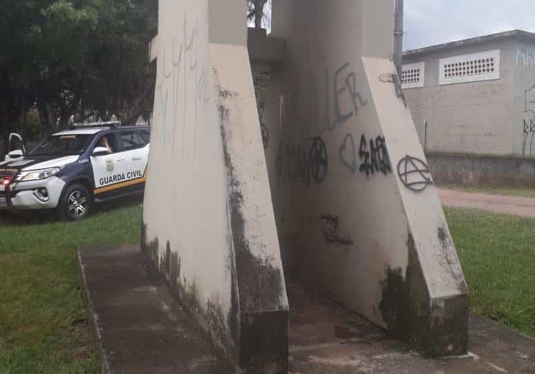 A menor estava pichando o monumento público conhecido como “monumento do leão”, localizado próximo à Avenida 32. Questionada, confessou que pichou também um estacionamento particular nas proximidades.