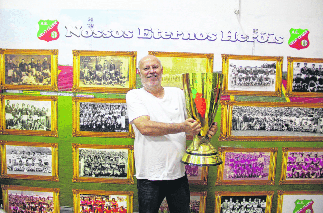 João com o troféu do Paulista da A-3 que valeu ao clube o retorno à divisão de acesso