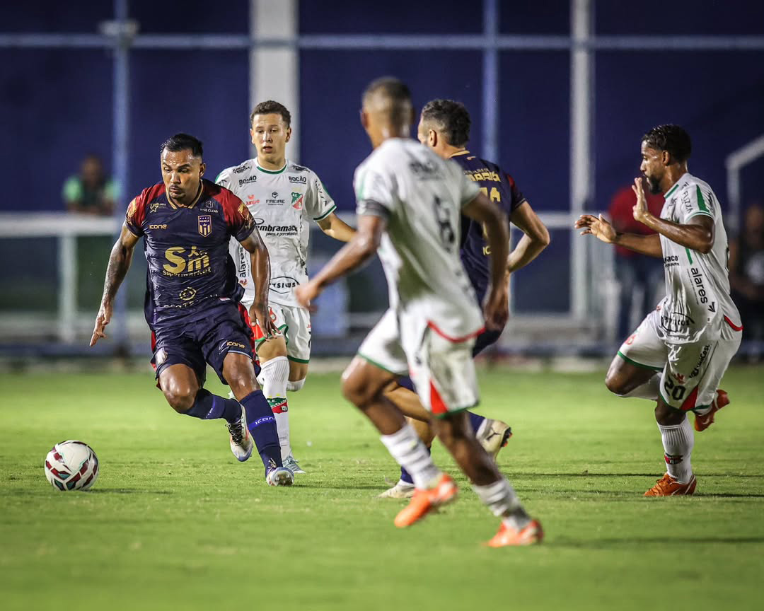 O jogo começou tenso e com as duas equipes se estudando. Aos 28 minutos da etapa inicial, a equipe da casa conseguiu abrir o placar com Lucas Sibito. No entanto, o Galo Vermelho reagiu rápido: aos 35 minutos, o lateral Felipe Pacajus balançou as redes e empatou o confronto, garantindo a igualdade no marcador até o intervalo.