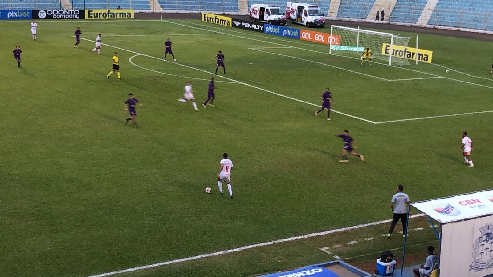 O jogo foi para o intervalo com o time do Sergipe vencendo por 2 a 0.