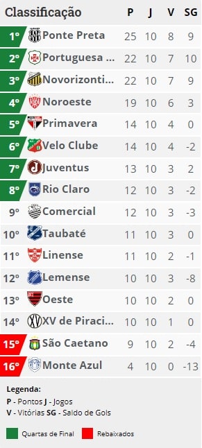 Outro destaque da rodada foi o Noroeste, que venceu o São Caetano por 2 a 1 e assumiu a quarta posição, jogando o time do ABC para a zona do rebaixamento. A degola tem ainda o Monte Azul na lanterna com apenas quatro pontos. Três times estão em alerta com a degola: XV de Piracicaba, Oeste e Lemense com 10 pontos.