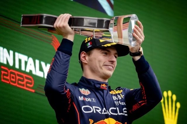 Max Verstappen comemora vitória no GP da Emilia-Romagna da F1 2022 — Foto: ANP via Getty Images
