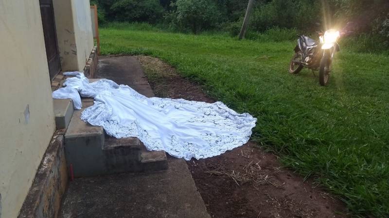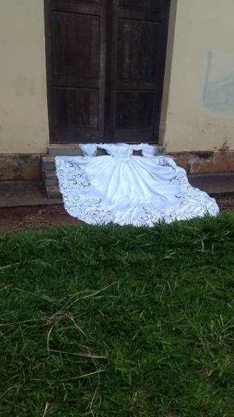 Confira abaixo vídeo (do Arquivo da Feena) e imagens do vestido encontrado em frente à capela: