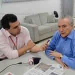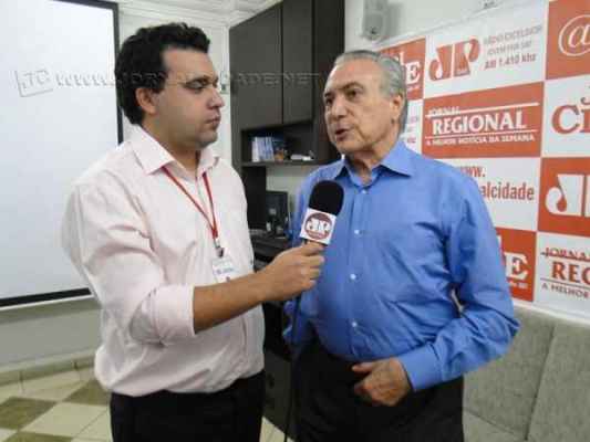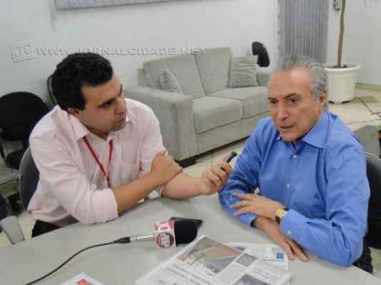 O vice-presidente da República, Michel Temer, esteve na manhã desta sexta-feira (19) na sede do Grupo JC de Comunicação. O candidato à reeleição, na mesma chapa da presidenta Dilma Roussef, foi entrevistado pelos profissionais do Jornal Cidade. Dentre os assuntos abordados, Temer falou sobre o repasse de recursos para os municípios, sobretudo Rio Claro, o desemprego na região e as pesquisas eleitorais. O vice-presidente também falou sobre o sonho do aeroporto em Rio Claro.
