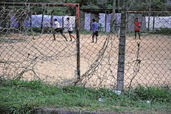 O problema, segundo ele, é principalmente com o alambrado. “A molecada joga bola e eles têm que brincar, é um direito deles, mas não tem alambrado para impedir que a bola bata nos carros, nas pessoas que passam, nas casas”, comenta, apontando o portão de sua casa arrebentando e com marcas de bola.
