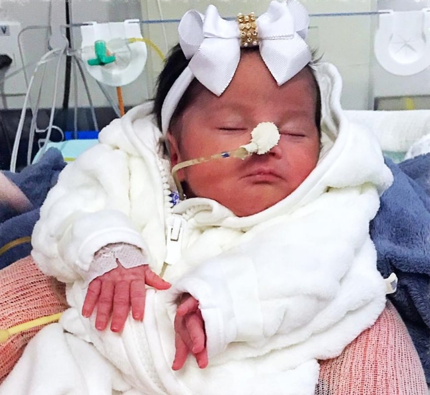“Desde o nascimento ela só recebe a nutrição parenteral, que é o alimento por uma veia da mãozinha. Foi um choque, mas estamos dispostos a tudo pela nossa filha”, relata o pai Edenilson Carlos de Oliveira.
