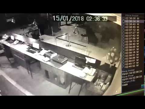 O sistema de câmeras de segurança flagraram o momento que o ator e sua mulher atiraram contra os policiais na recepção do hotel atingindo o escudos dos PMS. Logo após os disparos o casal se rendeu e foi preso.