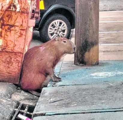 Uma capivara apareceu na Rua 5, na região central de Rio Claro, na manhã de segunda-feira (25) e chamou a atenção de muitos populares que estavam e passavam pelo local.
