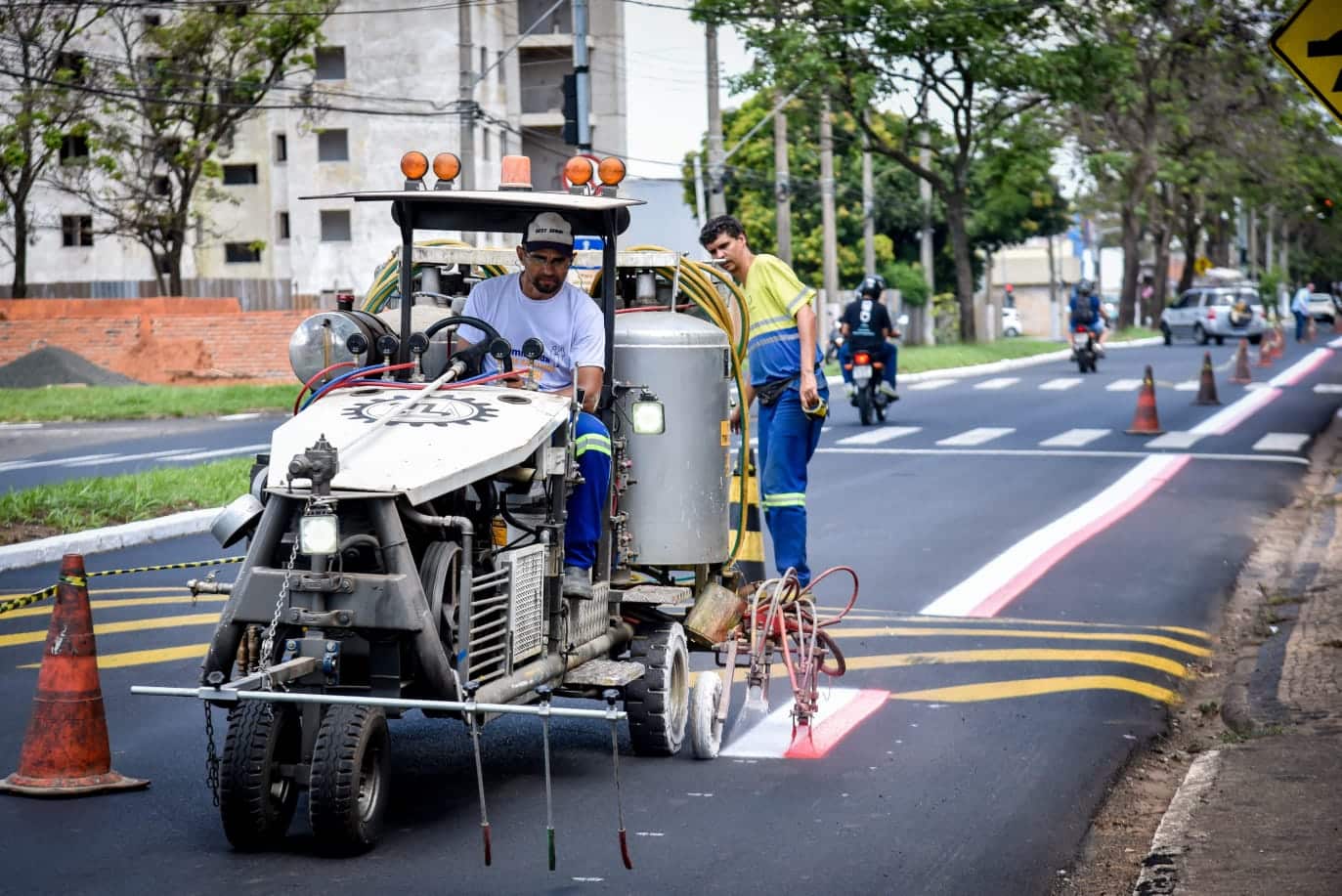 O secretário Municipal de Mobilidade Urbana e Defesa Civil, Paulo Paulon, também destaca a pintura de sinalização horizontal e ciclofaixas em diversos bairros, entre eles Jardim Portugal, Jardim Primavera e todo entorno do Lago Azul.