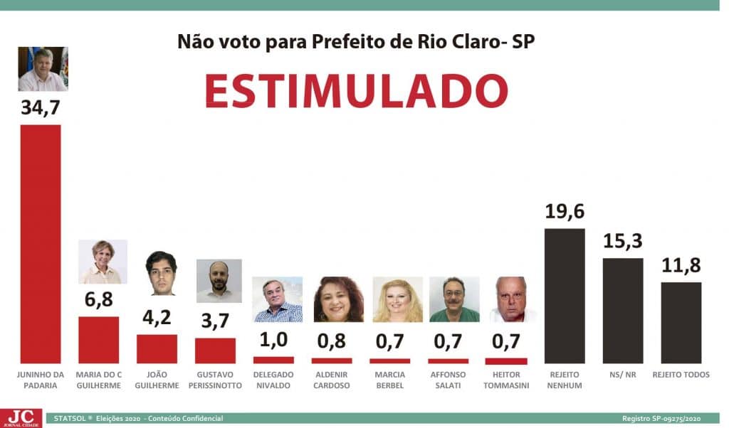 A pesquisa JC/Statsol foi realizada entre os dias 11 e 13 de novembro, com 600 pessoas em todas as regiões do município de Rio Claro, divididas em 11 blocos diferentes, presencialmente. O grau de confiança é de 95%. A pesquisa está registrada sob o número SP-09275/2020.