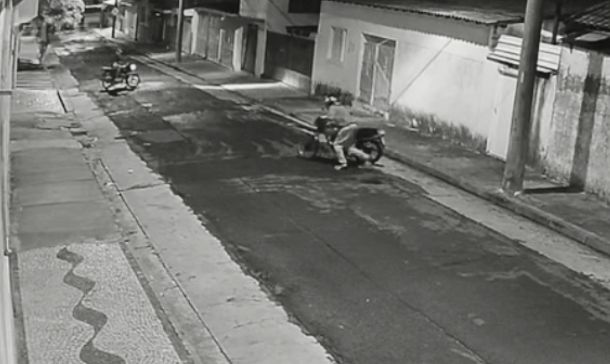Imagens de câmera de segurança mostraram o momento em que o crime ocorreu. A moto é uma Titan 125 cor vermelha com placa CFJ-3267. Quem tiver informações pode acionar a Polícia Militar no 190. O caso foi registrado no plantão policial.