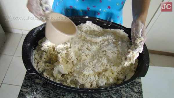 Preparo: Sovar até parar de grudar e ir acrescentando trigo. Passar na máquina de macarrão ou abrir a massa no pau de macarrão.